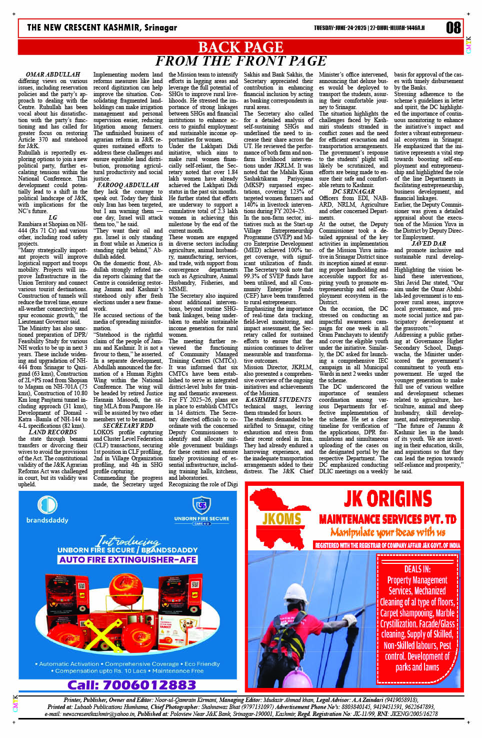 Crescent Kashmir 24-06-2025 Page: 8 June 24, 2025 << First << 8 >> Last >> Page 1Page 2Page 3Page 4Page 5Page 6Page 7Page 8 × Crescent Kashmir 24-06-2025 << First << 8 >> Last >> CK 1CK 2CK 3CK 4CK 5CK 6CK 7CK 8 CK 8
