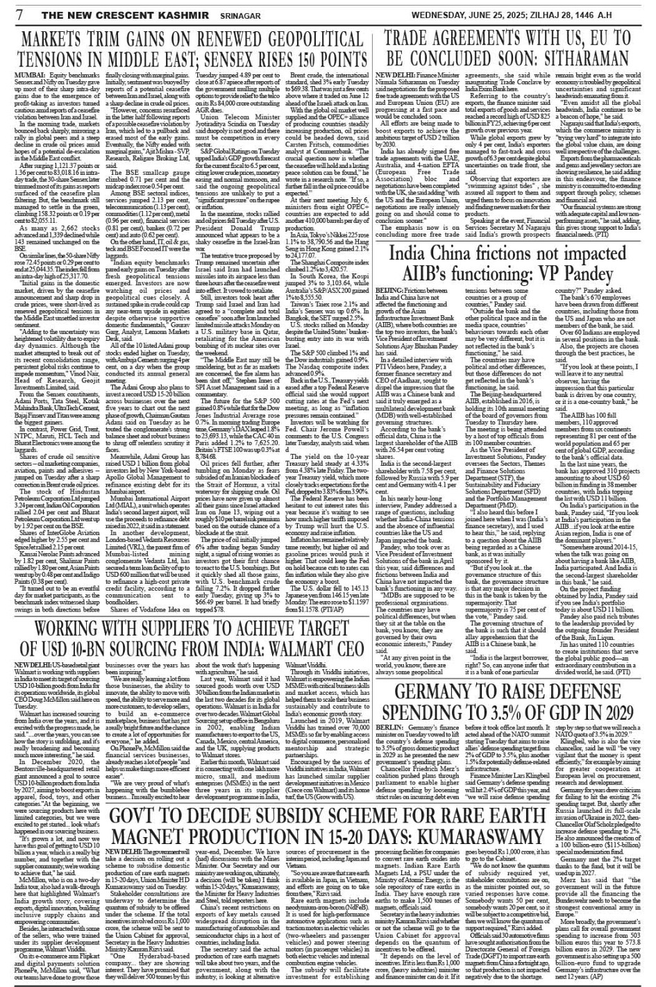 Crescent Kashmir 25-06-2025 Page: 7 June 25, 2025 << First << 7 >> Last >> Page 1Page 2Page 3Page 4Page 5Page 6Page 7Page 8 × Crescent Kashmir 25-06-2025 << First << 7 >> Last >> CK 1CK 2CK 3CK 4CK 5CK 6CK 7CK 8 CK 7