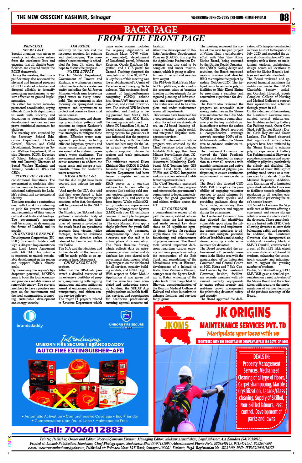Crescent Kashmir 25-06-2025 Page: 8 June 25, 2025 << First << 8 >> Last >> Page 1Page 2Page 3Page 4Page 5Page 6Page 7Page 8 × Crescent Kashmir 25-06-2025 << First << 8 >> Last >> CK 1CK 2CK 3CK 4CK 5CK 6CK 7CK 8 CK 8