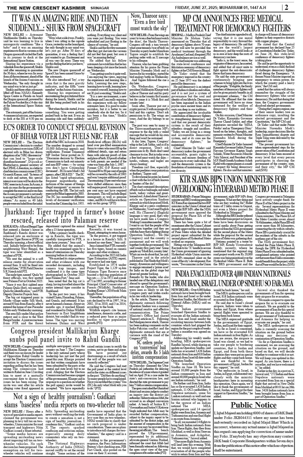 Crescent Kashmir 27-06-2025 Page: 2 June 27, 2025 << First << 2 >> Last >> Page 1Page 2Page 3Page 4Page 5Page 6Page 7Page 8 × Crescent Kashmir 27-06-2025 << First << 2 >> Last >> CK 1CK 2CK 3CK 4CK 5CK 6CK 7CK 8 CK 2