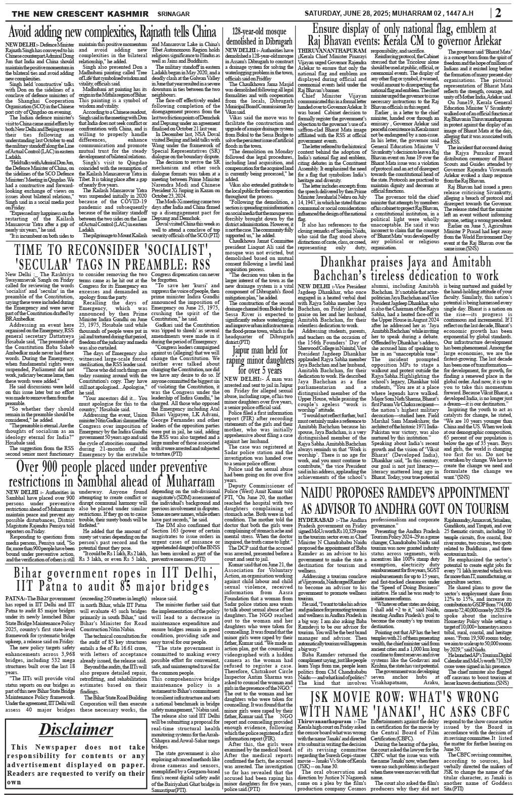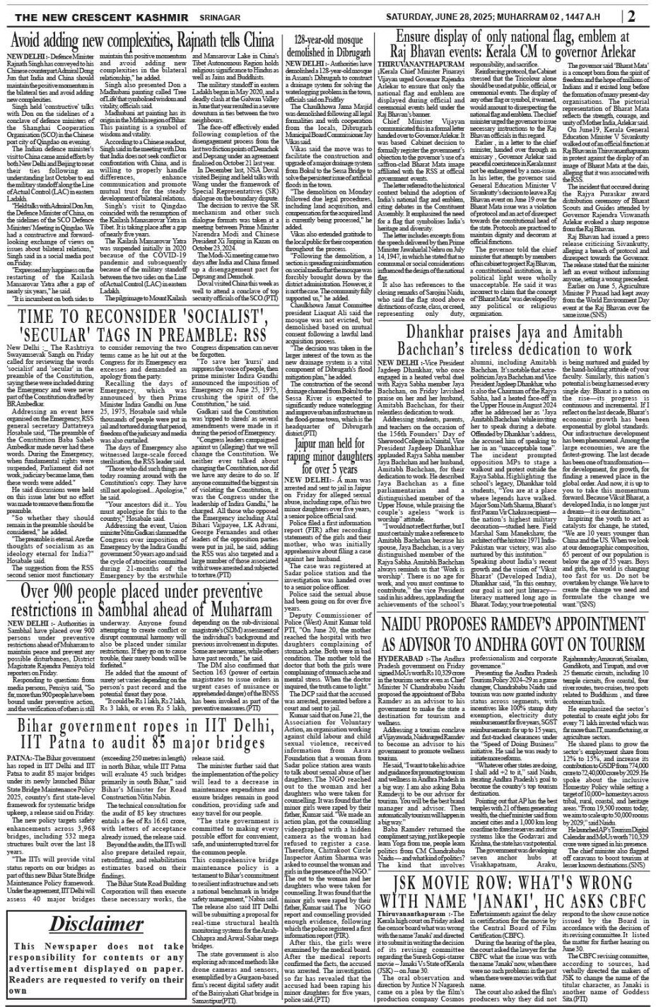 Crescent Kashmir 28-06-2025 Page: 2 June 28, 2025 << First << 2 >> Last >> Page 1Page 2Page 3Page 4Page 5Page 6Page 7Page 8 × Crescent Kashmir 28-06-2025 << First << 2 >> Last >> CK 1CK 2CK 3CK 4CK 5CK 6CK 7CK 8 CK 2