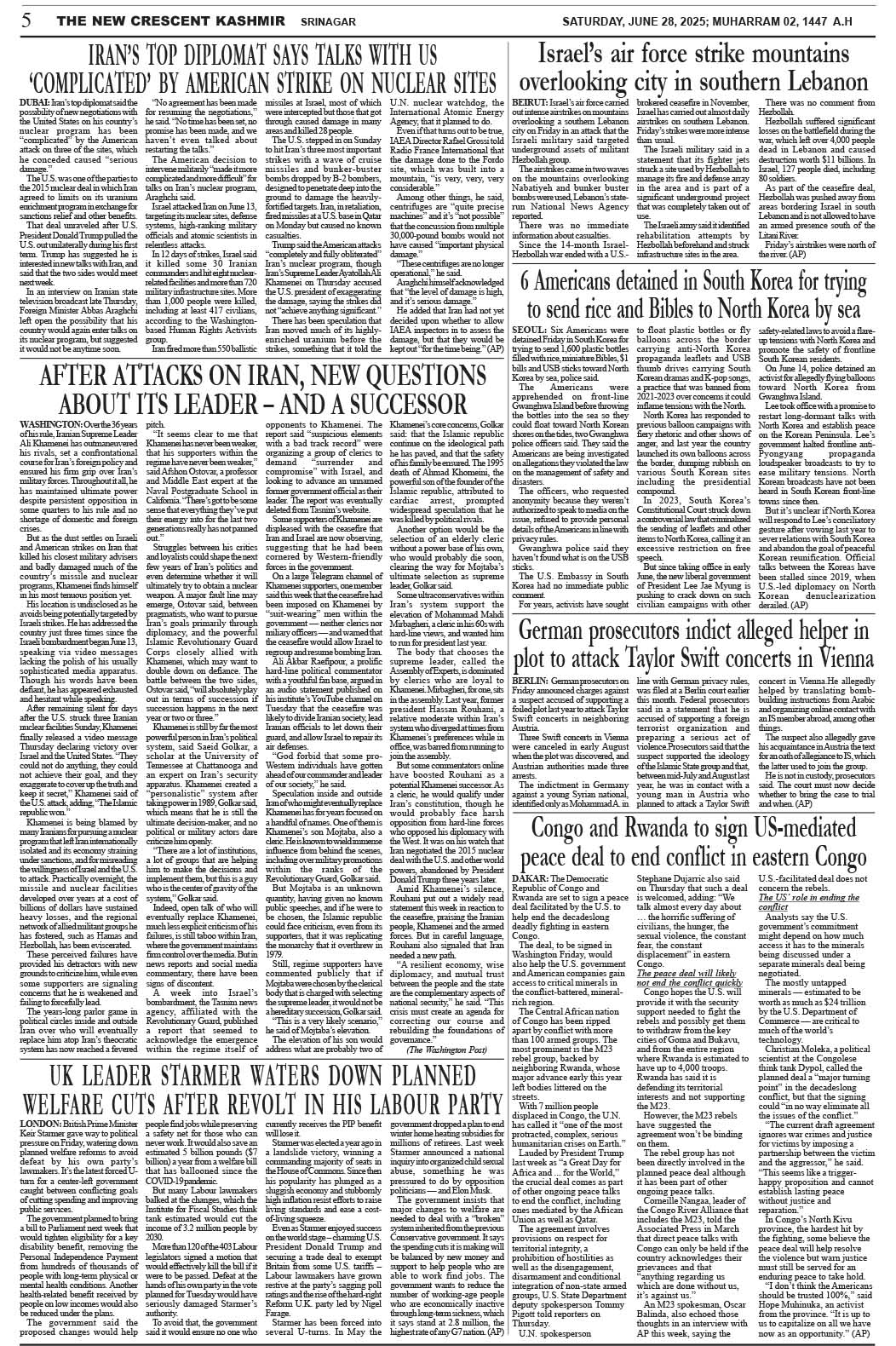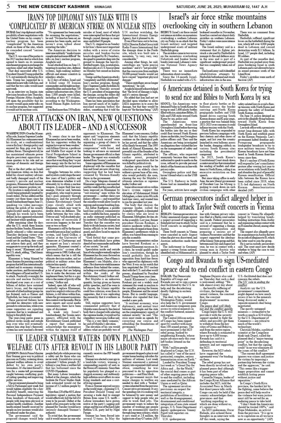 Crescent Kashmir 28-06-2025 Page: 5 June 28, 2025 << First << 5 >> Last >> Page 1Page 2Page 3Page 4Page 5Page 6Page 7Page 8 × Crescent Kashmir 28-06-2025 << First << 5 >> Last >> CK 1CK 2CK 3CK 4CK 5CK 6CK 7CK 8 CK 5