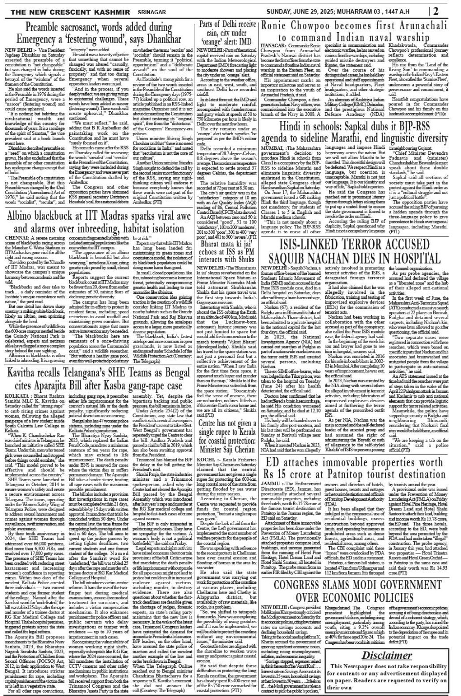 Crescent Kashmir 29-06-2025 Page: 2 June 29, 2025 << First << 2 >> Last >> Page 1Page 2Page 3Page 4Page 5Page 6Page 7Page 8 × Crescent Kashmir 29-06-2025 << First << 2 >> Last >> CK 1CK 2CK 3CK 4CK 5CK 6CK 7CK 8 CK 2