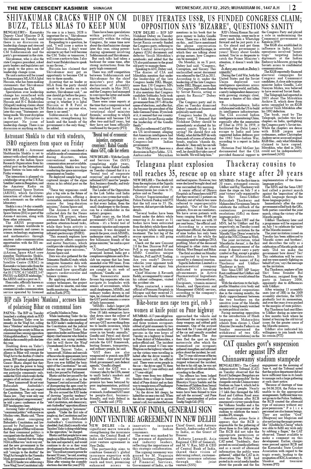 Crescent Kashmir 02-07-2025 Page: 2 July 02, 2025 << First << 2 >> Last >> Page 1Page 2Page 3Page 4Page 5Page 6Page 7Page 8 × Crescent Kashmir 02-07-2025 << First << 2 >> Last >> CK 1CK 2CK 3CK 4CK 5CK 6CK 7CK 8 CK 2