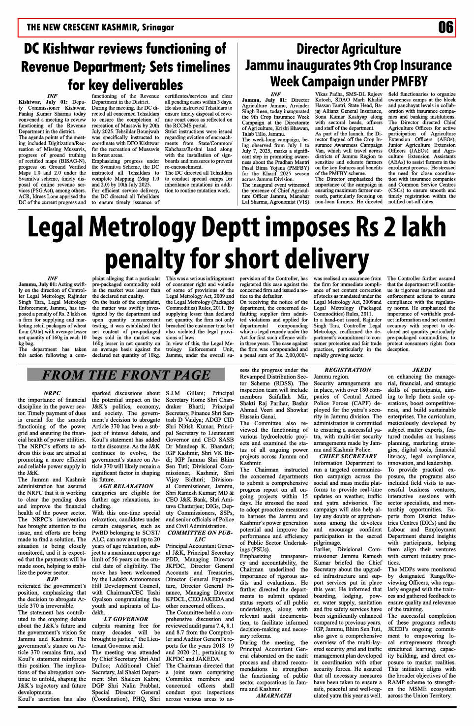 Crescent Kashmir 02-07-2025 Page: 6 July 02, 2025 << First << 6 >> Last >> Page 1Page 2Page 3Page 4Page 5Page 6Page 7Page 8 × Crescent Kashmir 02-07-2025 << First << 6 >> Last >> CK 1CK 2CK 3CK 4CK 5CK 6CK 7CK 8 CK 6