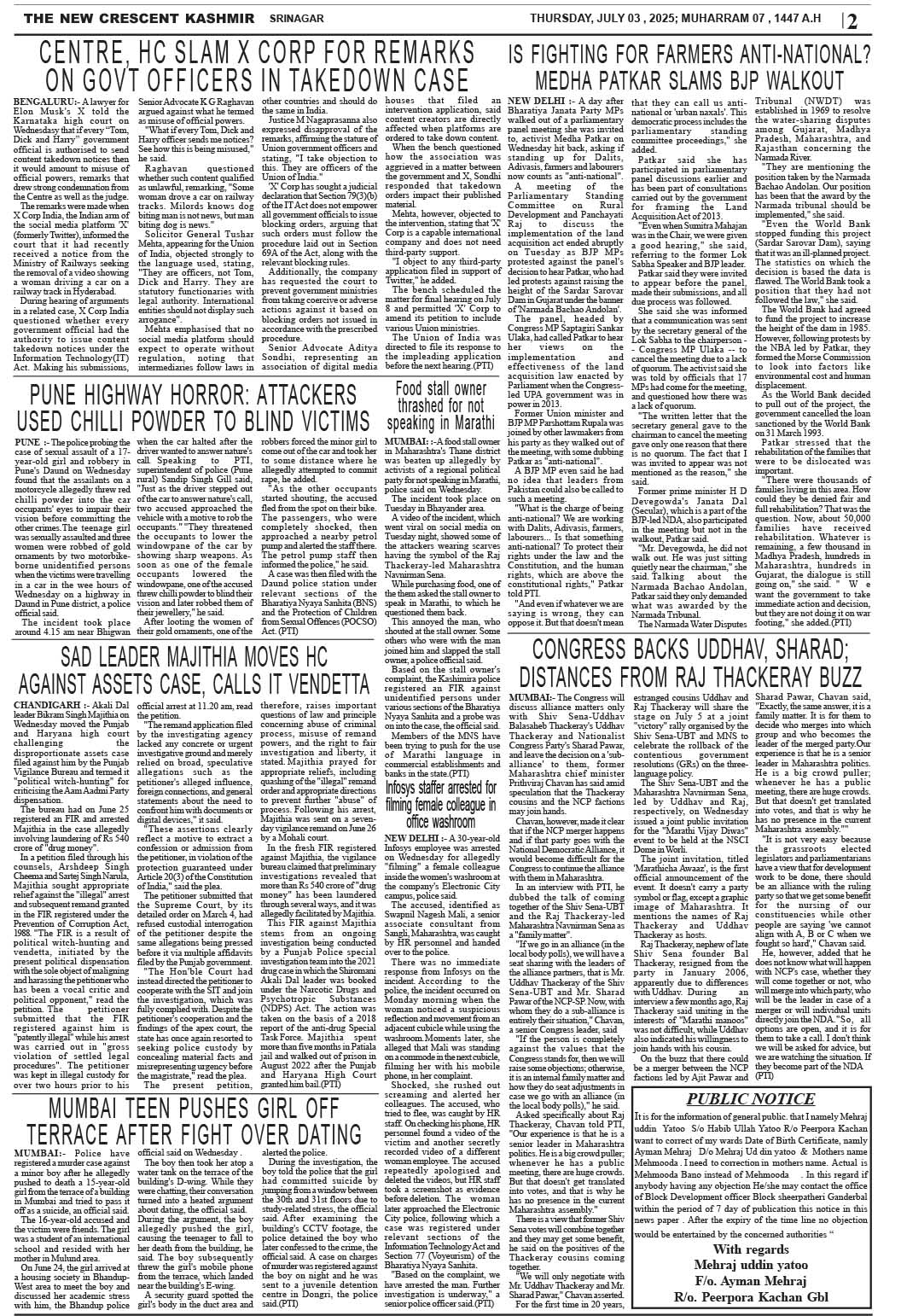 Crescent Kashmir 03-07-2025 Page: 2 July 03, 2025 << First << 2 >> Last >> Page 1Page 2Page 3Page 4Page 5Page 6Page 7Page 8 × Crescent Kashmir 03-07-2025 << First << 2 >> Last >> CK 1CK 2CK 3CK 4CK 5CK 6CK 7CK 8 CK 2
