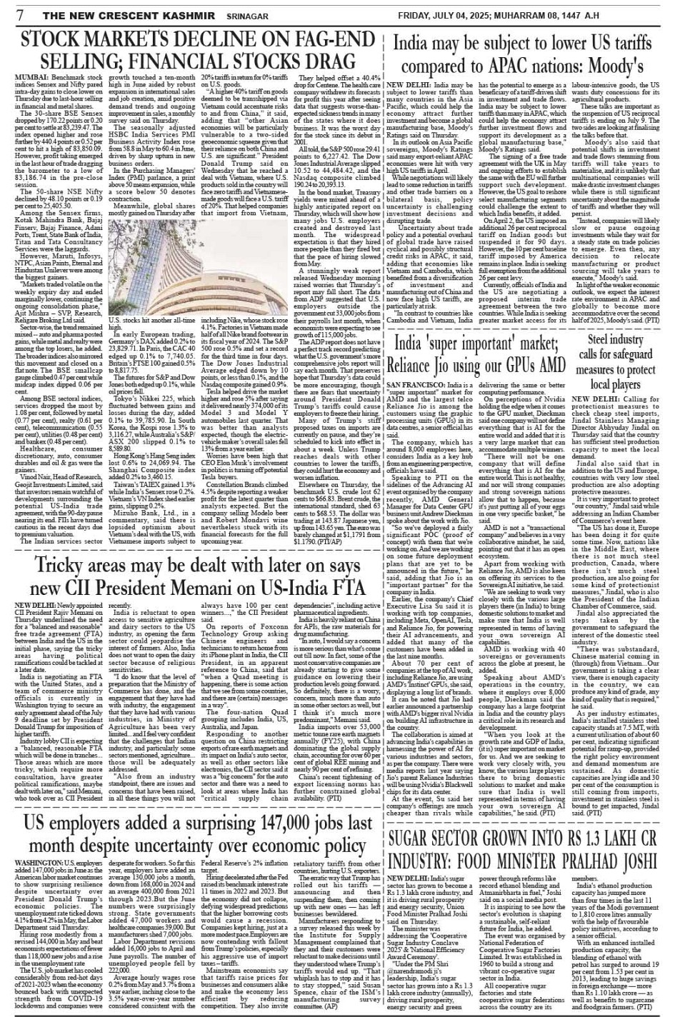 Crescent Kashmir 04-07-2025 Page: 7 July 04, 2025 << First << 7 >> Last >> Page 1Page 2Page 3Page 4Page 5Page 6Page 7Page 8 × Crescent Kashmir 04-07-2025 << First << 7 >> Last >> CK 1CK 2CK 3CK 4CK 5CK 6CK 7CK 8 CK 7
