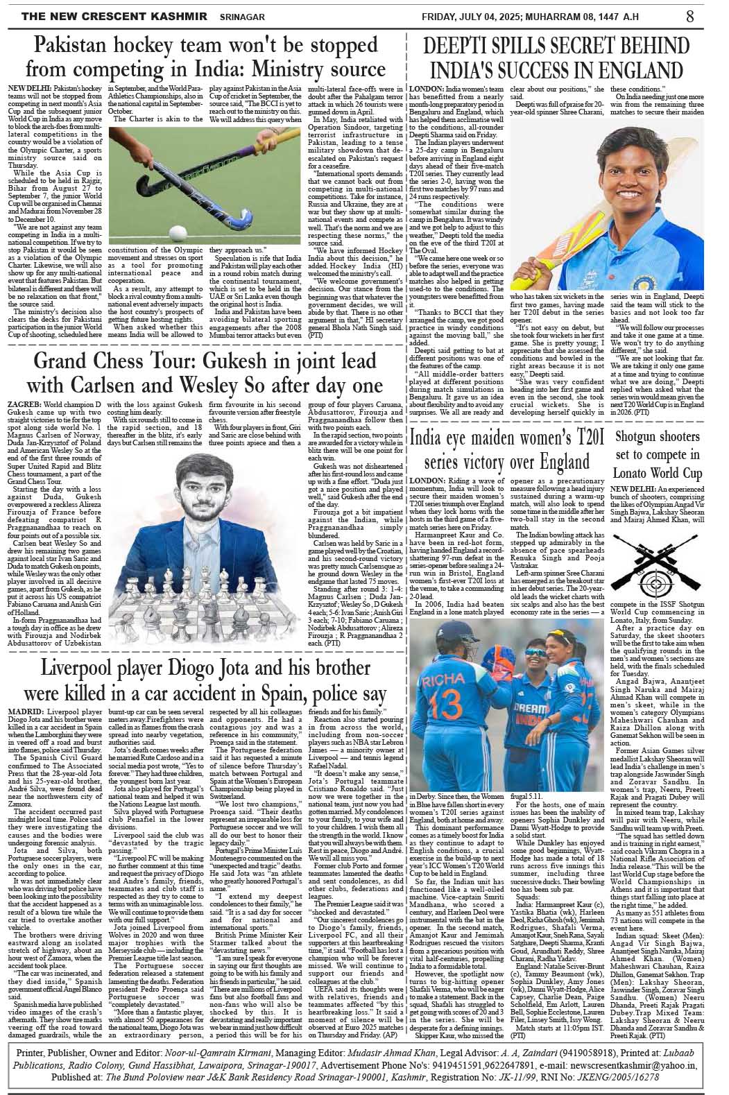 Crescent Kashmir 04-07-2025 Page: 8 July 04, 2025 << First << 8 >> Last >> Page 1Page 2Page 3Page 4Page 5Page 6Page 7Page 8 × Crescent Kashmir 04-07-2025 << First << 8 >> Last >> CK 1CK 2CK 3CK 4CK 5CK 6CK 7CK 8 CK 8