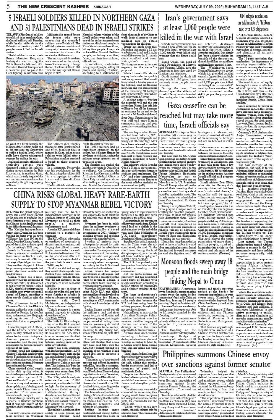 Crescent Kashmir 09-07-2025 Page: 5 July 09, 2025 << First << 5 >> Last >> Page 1Page 2Page 3Page 4Page 5Page 6Page 7Page 8 × Crescent Kashmir 09-07-2025 << First << 5 >> Last >> CK 1CK 2CK 3CK 4CK 5CK 6CK 7CK 8 CK 5