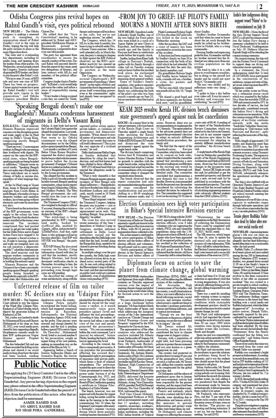 Crescent Kashmir 11-07-2025 Page: 2 July 11, 2025 << First << 2 >> Last >> Page 1Page 2Page 3Page 4Page 5Page 6Page 7Page 8 × Crescent Kashmir 11-07-2025 << First << 2 >> Last >> CK 1CK 2CK 3CK 4CK 5CK 6CK 7CK 8 CK 2