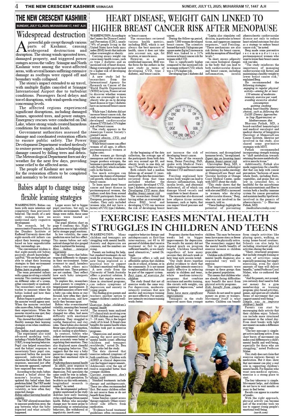 Crescent Kashmir 13-07-2025 Page: 4 July 13, 2025 << First << 4 >> Last >> Page 1Page 2Page 3Page 4Page 5Page 6Page 7Page 8 × Crescent Kashmir 13-07-2025 << First << 4 >> Last >> CK 1CK 2CK 3CK 4CK 5CK 6CK 7CK 8 CK 4