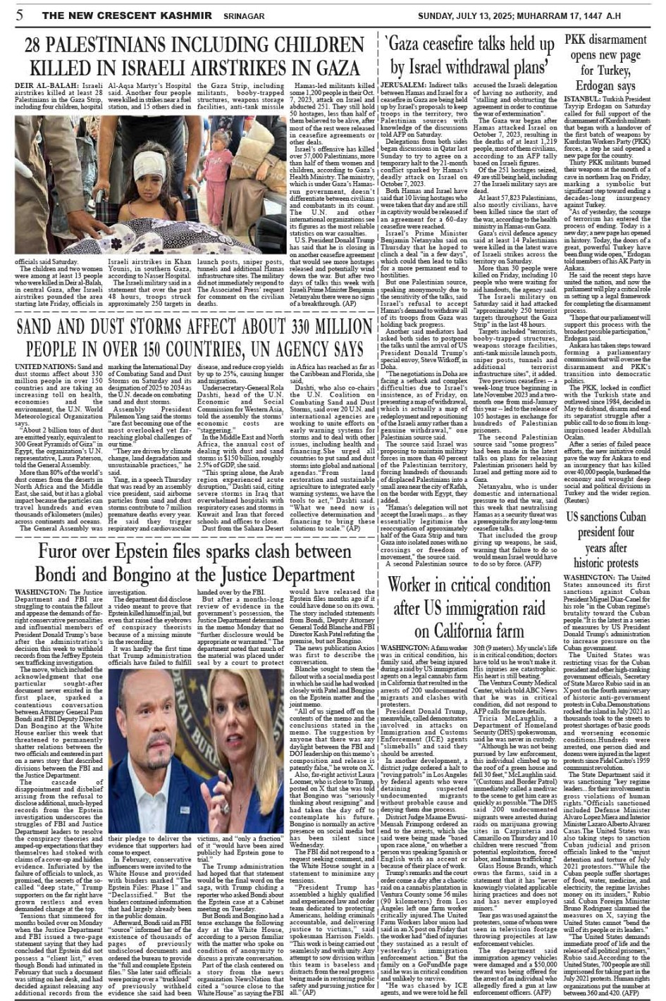 Crescent Kashmir 13-07-2025 Page: 5 July 13, 2025 << First << 5 >> Last >> Page 1Page 2Page 3Page 4Page 5Page 6Page 7Page 8 × Crescent Kashmir 13-07-2025 << First << 5 >> Last >> CK 1CK 2CK 3CK 4CK 5CK 6CK 7CK 8 CK 5