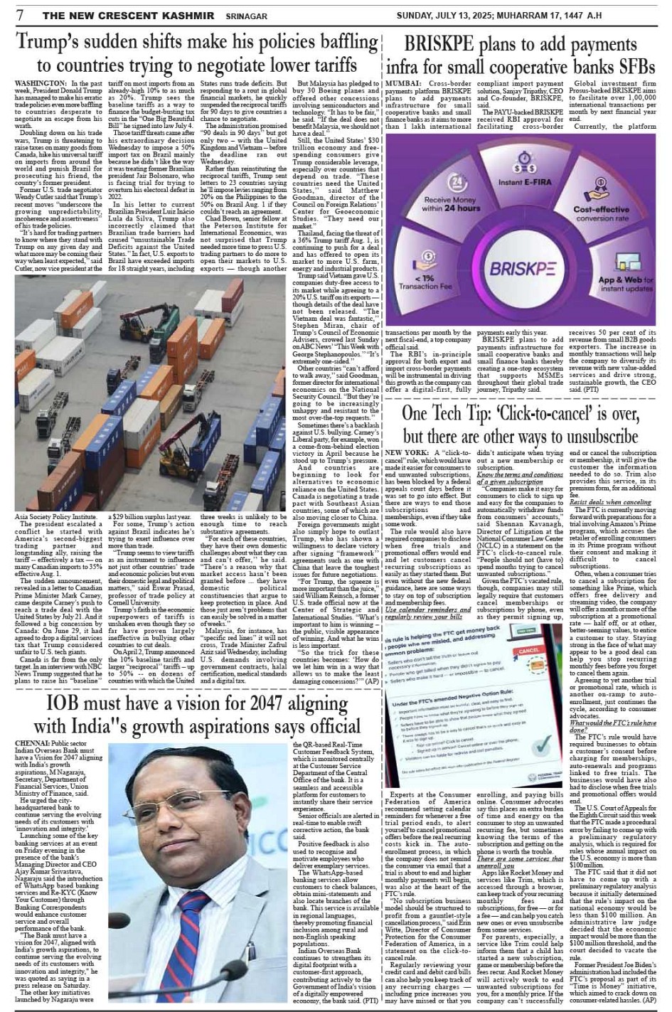 Crescent Kashmir 13-07-2025 Page: 7 July 13, 2025 << First << 7 >> Last >> Page 1Page 2Page 3Page 4Page 5Page 6Page 7Page 8 × Crescent Kashmir 13-07-2025 << First << 7 >> Last >> CK 1CK 2CK 3CK 4CK 5CK 6CK 7CK 8 CK 7