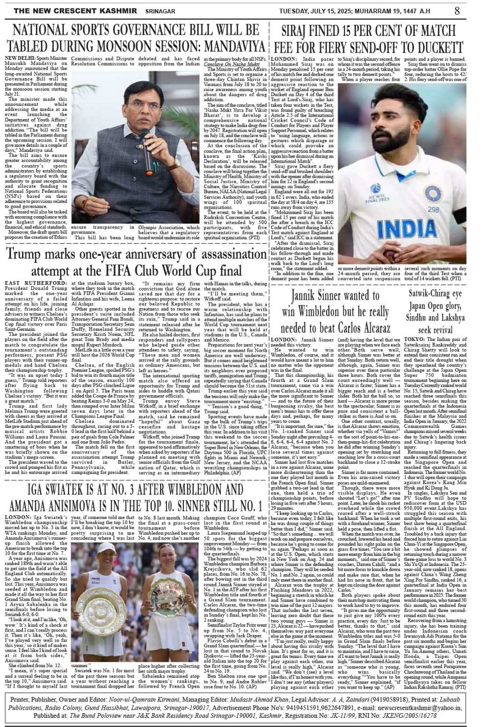 Crescent Kashmir 15-07-2025 Page: 8 July 15, 2025 << First << 8 >> Last >> Page 1Page 2Page 3Page 4Page 5Page 6Page 7Page 8 × Crescent Kashmir 15-07-2025 << First << 8 >> Last >> CK 1CK 2CK 3CK 4CK 5CK 6CK 7CK 8 CK 8