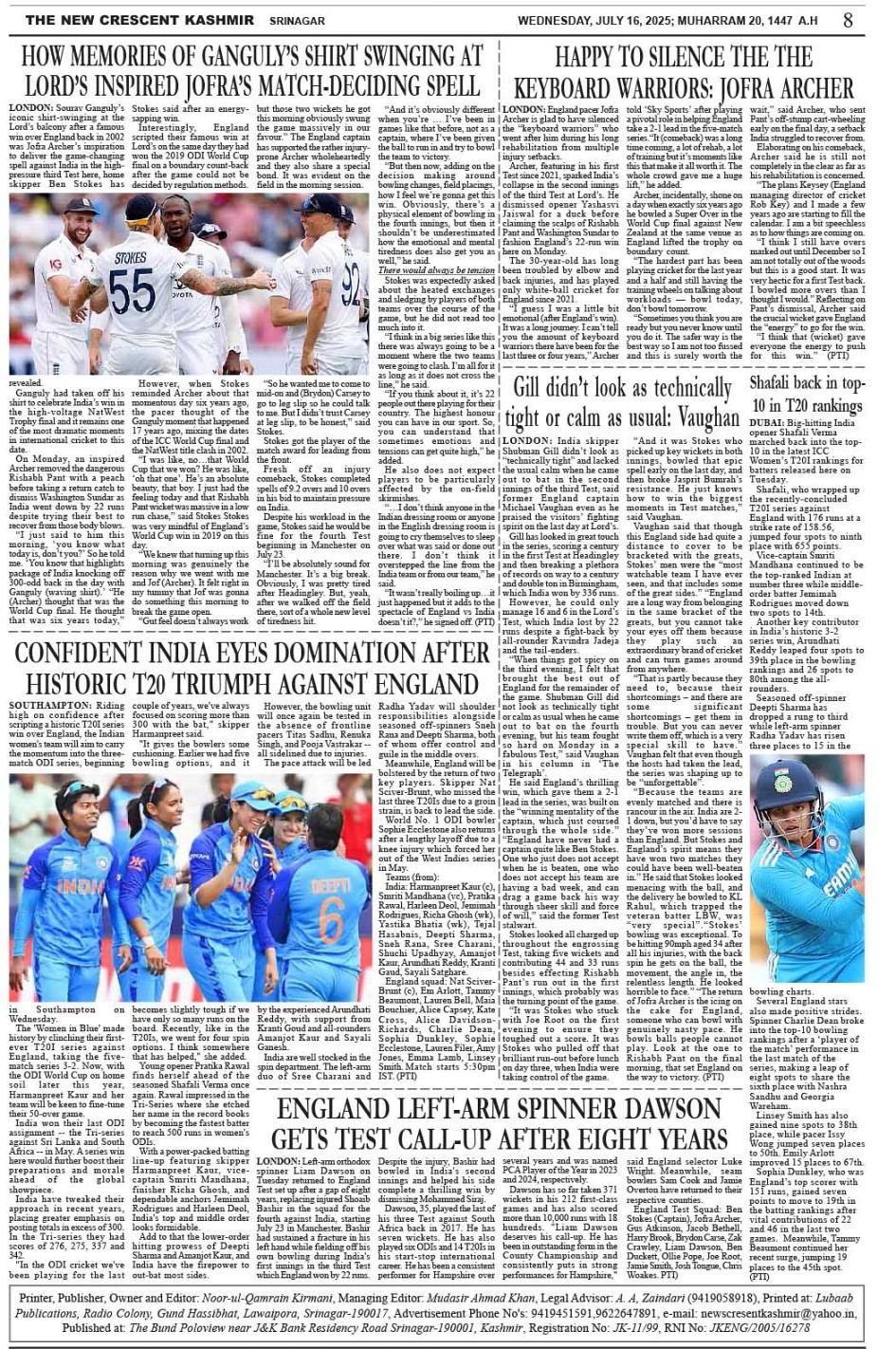 Crescent Kashmir 16-07-2025 Page: 8 July 16, 2025 << First << 8 >> Last >> Page 1Page 2Page 3Page 4Page 5Page 6Page 7Page 8 × Crescent Kashmir 16-07-2025 << First << 8 >> Last >> CK 1CK 2CK 3CK 4CK 5CK 6CK 7CK 8 CK 8