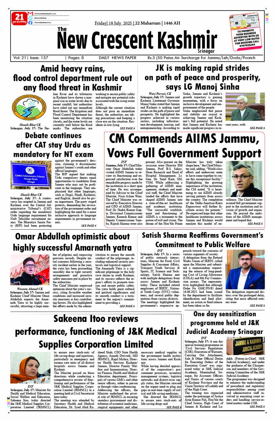 Crescent Kashmir 18-07-2025 July 18, 2025 << First << 1 >> Last >> Page 1Page 2Page 3Page 4Page 5Page 6Page 7Page 8 × Crescent Kashmir 18-07-2025 << First << 1 >> Last >> CK 1CK 2CK 3CK 4CK 5CK 6CK 7CK 8 CK 1