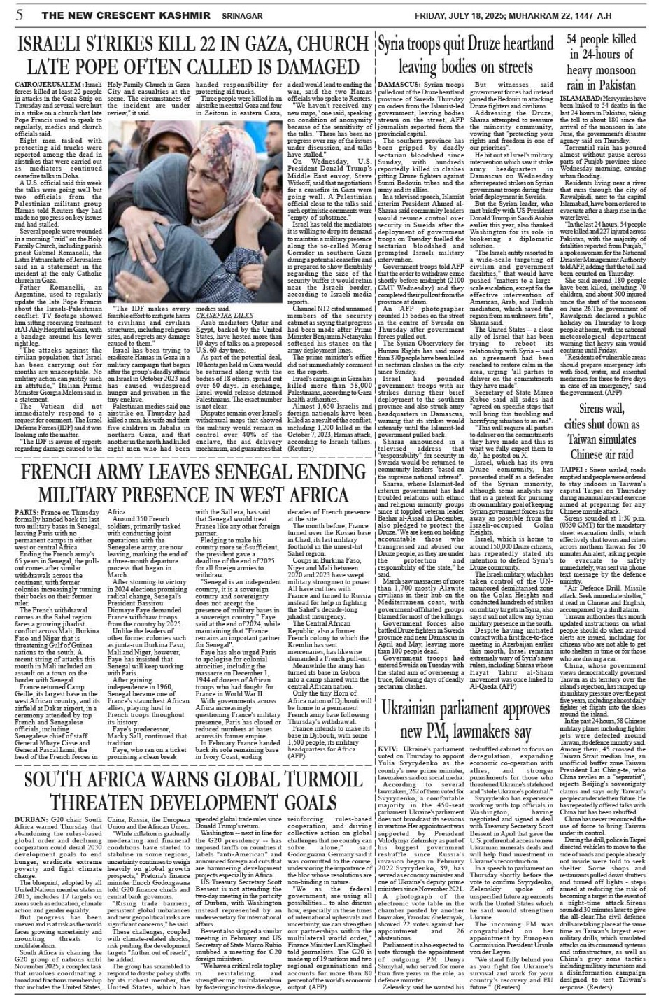 Crescent Kashmir 18-07-2025 Page: 5 July 18, 2025 << First << 5 >> Last >> Page 1Page 2Page 3Page 4Page 5Page 6Page 7Page 8 × Crescent Kashmir 18-07-2025 << First << 5 >> Last >> CK 1CK 2CK 3CK 4CK 5CK 6CK 7CK 8 CK 5