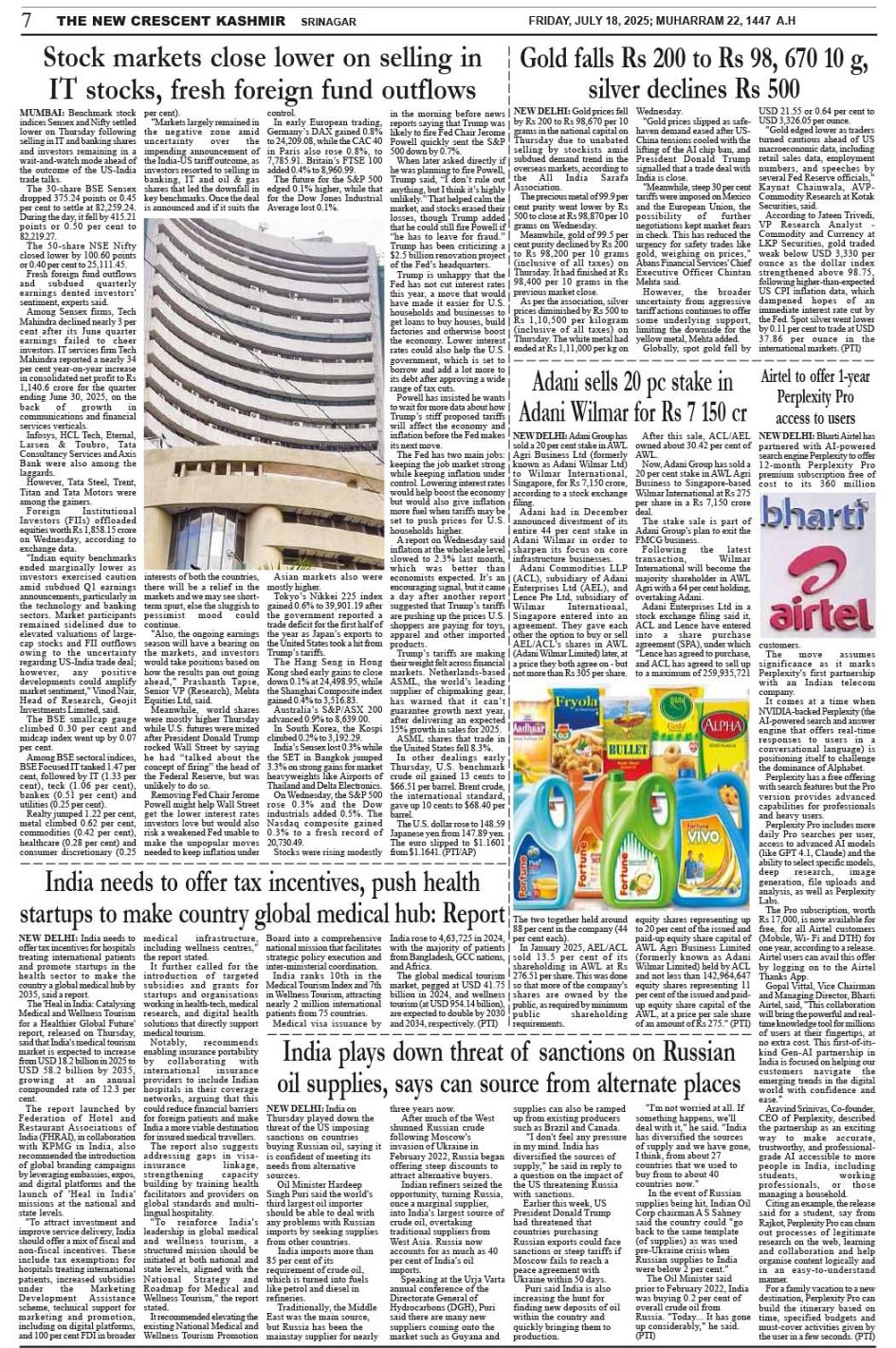 Crescent Kashmir 18-07-2025 Page: 7 July 18, 2025 << First << 7 >> Last >> Page 1Page 2Page 3Page 4Page 5Page 6Page 7Page 8 × Crescent Kashmir 18-07-2025 << First << 7 >> Last >> CK 1CK 2CK 3CK 4CK 5CK 6CK 7CK 8 CK 7
