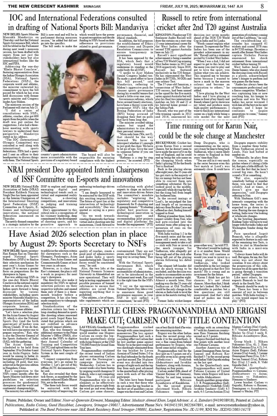 Crescent Kashmir 18-07-2025 Page: 8 July 18, 2025 << First << 8 >> Last >> Page 1Page 2Page 3Page 4Page 5Page 6Page 7Page 8 × Crescent Kashmir 18-07-2025 << First << 8 >> Last >> CK 1CK 2CK 3CK 4CK 5CK 6CK 7CK 8 CK 8