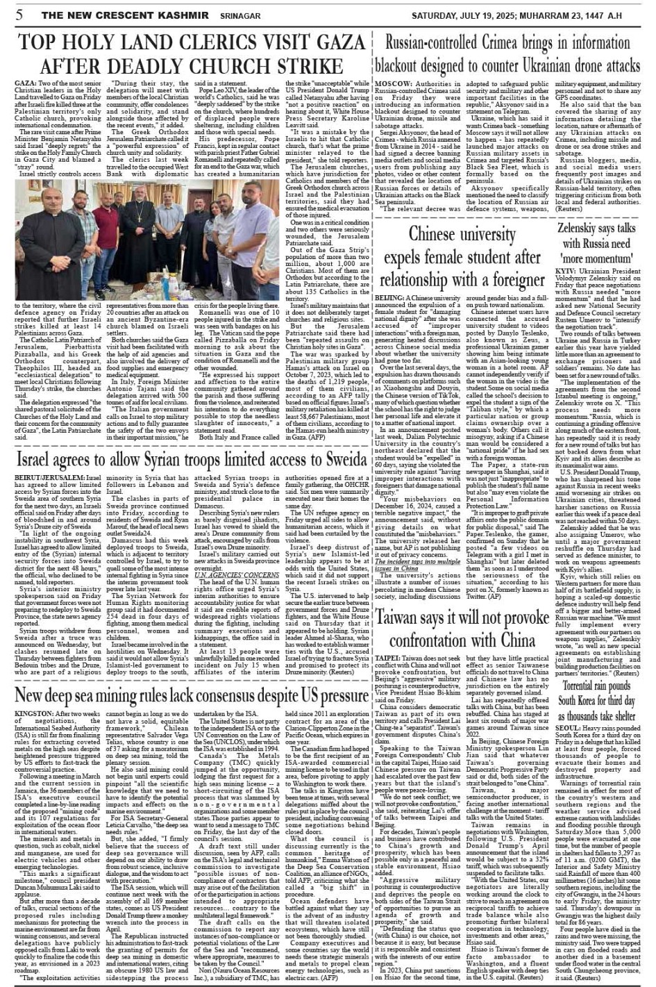 Crescent Kashmir 19-07-2025 Page: 5 July 19, 2025 << First << 5 >> Last >> Page 1Page 2Page 3Page 4Page 5Page 6Page 7Page 8 × Crescent Kashmir 19-07-2025 << First << 5 >> Last >> CK 1CK 2CK 3CK 4CK 5CK 6CK 7CK 8 CK 5