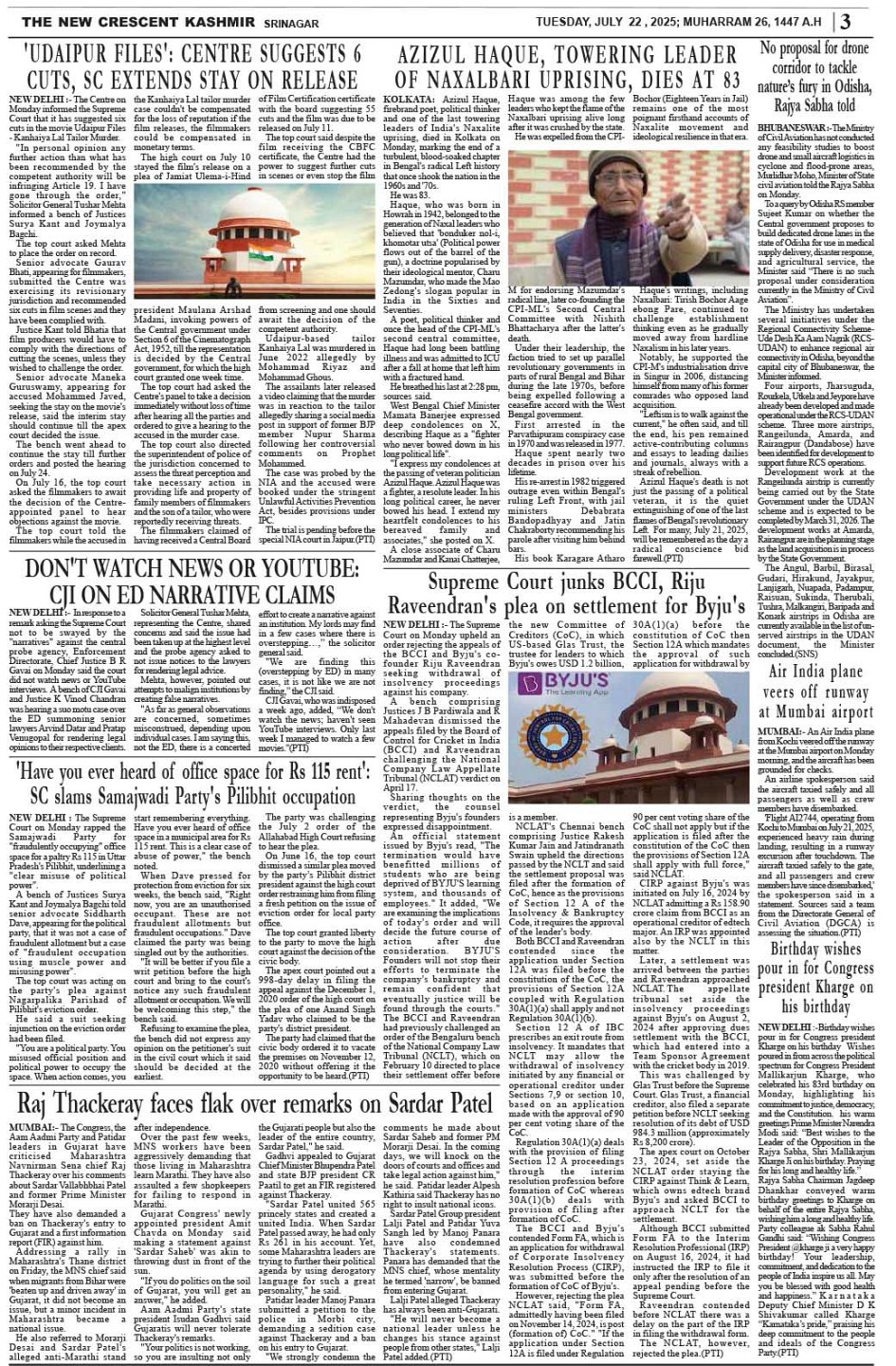 Crescent Kashmir 22-07-2025 Page: 3 July 22, 2025 << First << 3 >> Last >> Page 1Page 2Page 3Page 4Page 5Page 6Page 7Page 8 × Crescent Kashmir 22-07-2025 << First << 3 >> Last >> CK 1CK 2CK 3CK 4CK 5CK 6CK 7CK 8 CK 3