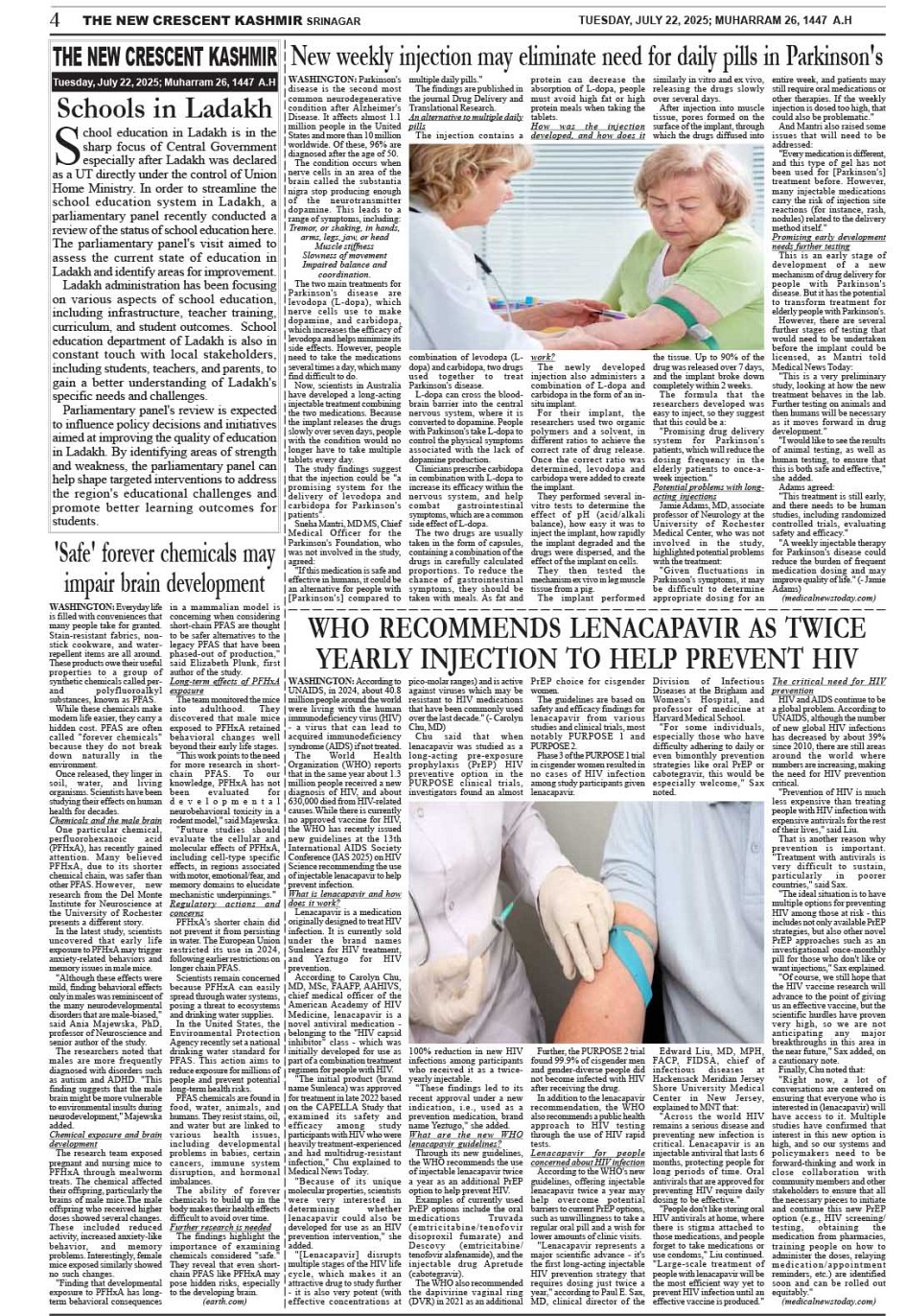 Crescent Kashmir 22-07-2025 Page: 4 July 22, 2025 << First << 4 >> Last >> Page 1Page 2Page 3Page 4Page 5Page 6Page 7Page 8 × Crescent Kashmir 22-07-2025 << First << 4 >> Last >> CK 1CK 2CK 3CK 4CK 5CK 6CK 7CK 8 CK 4