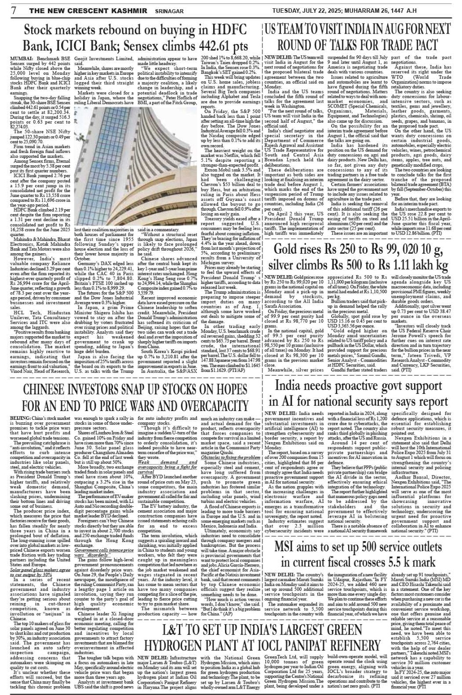 Crescent Kashmir 22-07-2025 Page: 7 July 22, 2025 << First << 7 >> Last >> Page 1Page 2Page 3Page 4Page 5Page 6Page 7Page 8 × Crescent Kashmir 22-07-2025 << First << 7 >> Last >> CK 1CK 2CK 3CK 4CK 5CK 6CK 7CK 8 CK 7