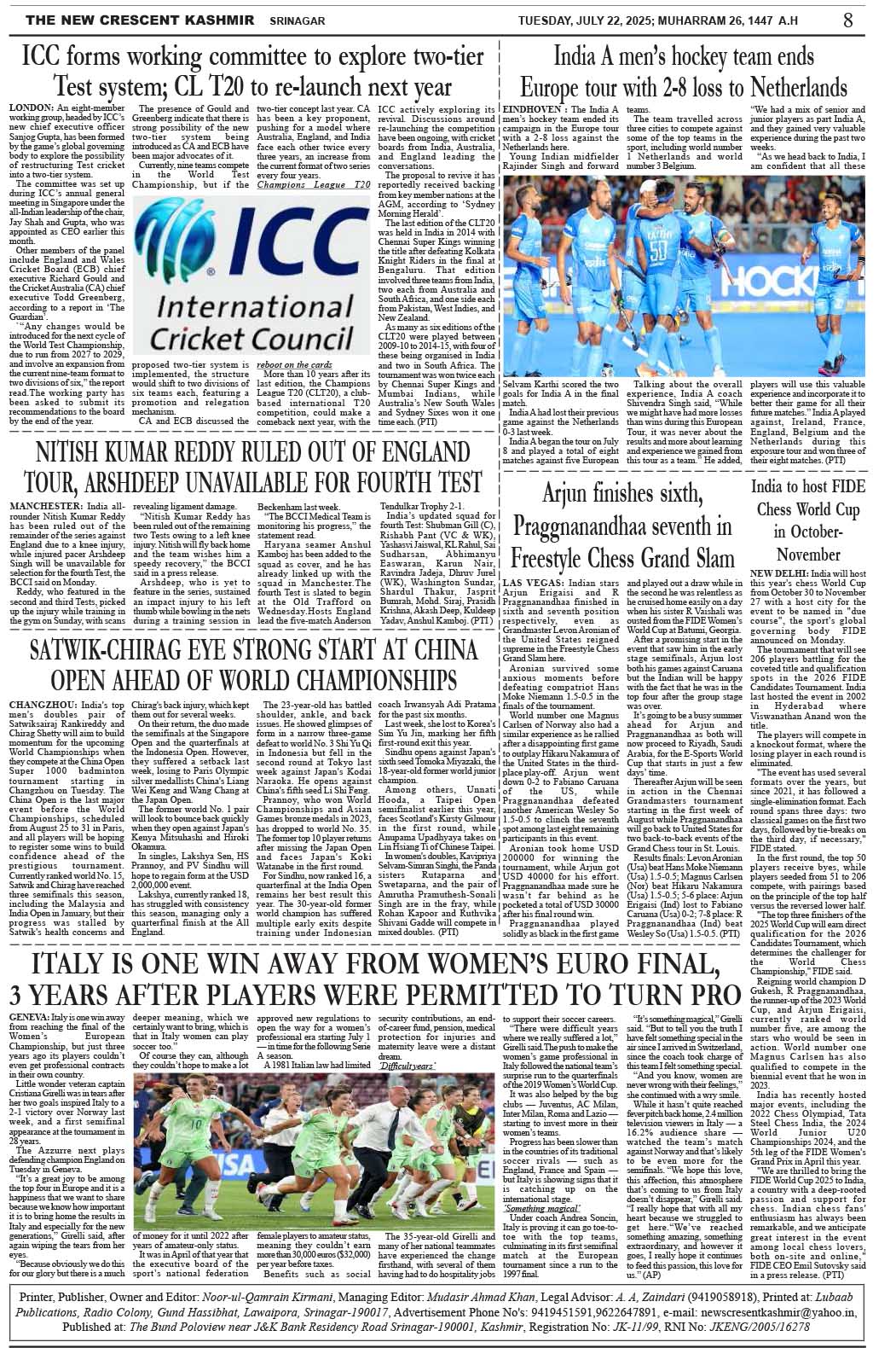 Crescent Kashmir 22-07-2025 Page: 8 July 22, 2025 << First << 8 >> Last >> Page 1Page 2Page 3Page 4Page 5Page 6Page 7Page 8 × Crescent Kashmir 22-07-2025 << First << 8 >> Last >> CK 1CK 2CK 3CK 4CK 5CK 6CK 7CK 8 CK 8