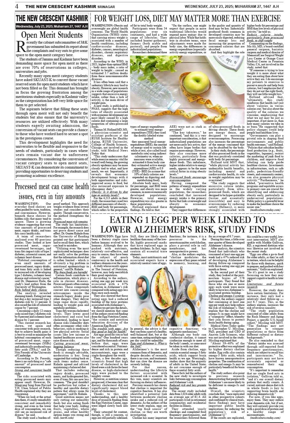 Crescent Kashmir 23-07-2025 Page: 4 July 23, 2025 << First << 4 >> Last >> Page 1Page 2Page 3Page 4Page 5Page 6Page 7Page 8 × Crescent Kashmir 23-07-2025 << First << 4 >> Last >> CK 1CK 2CK 3CK 4CK 5CK 6CK 7CK 8 CK 4