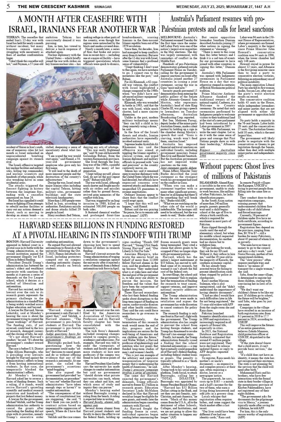 Crescent Kashmir 23-07-2025 Page: 5 July 23, 2025 << First << 5 >> Last >> Page 1Page 2Page 3Page 4Page 5Page 6Page 7Page 8 × Crescent Kashmir 23-07-2025 << First << 5 >> Last >> CK 1CK 2CK 3CK 4CK 5CK 6CK 7CK 8 CK 5