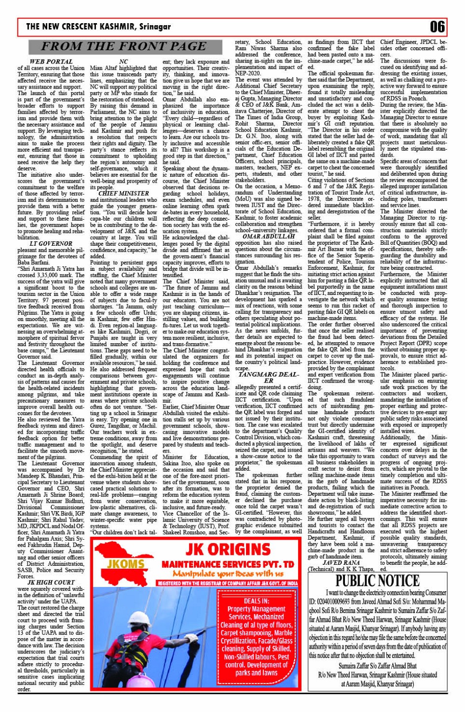 Crescent Kashmir 23-07-2025 Page: 6 July 23, 2025 << First << 6 >> Last >> Page 1Page 2Page 3Page 4Page 5Page 6Page 7Page 8 × Crescent Kashmir 23-07-2025 << First << 6 >> Last >> CK 1CK 2CK 3CK 4CK 5CK 6CK 7CK 8 CK 6