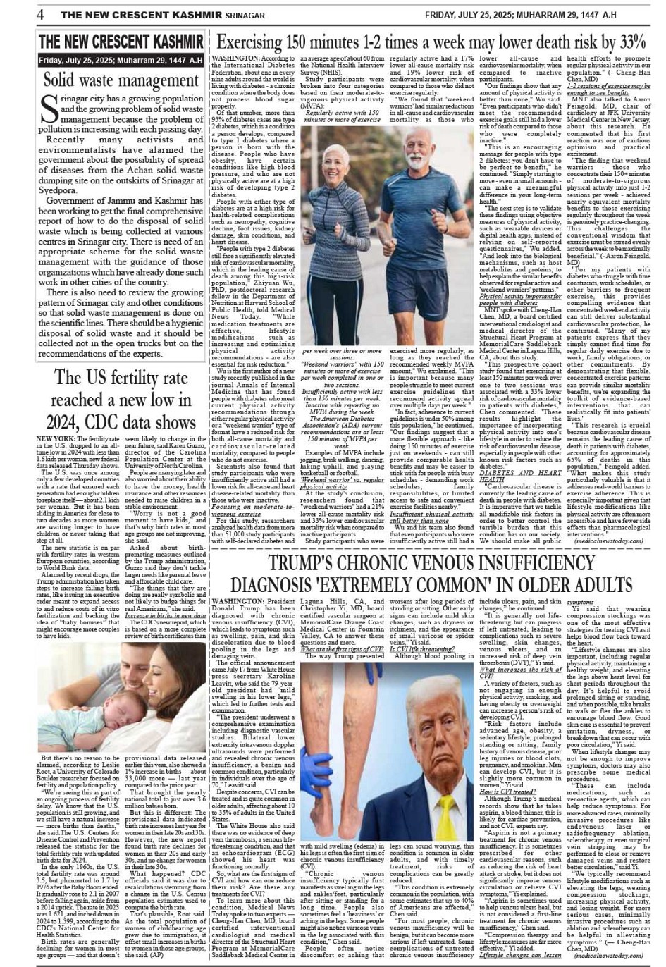 Crescent Kashmir 25-07-2025 Page: 4 July 25, 2025 << First << 4 >> Last >> Page 1Page 2Page 3Page 4Page 5Page 6Page 7Page 8 × Crescent Kashmir 25-07-2025 << First << 4 >> Last >> CK 1CK 2CK 3CK 4CK 5CK 6CK 7CK 8 CK 4