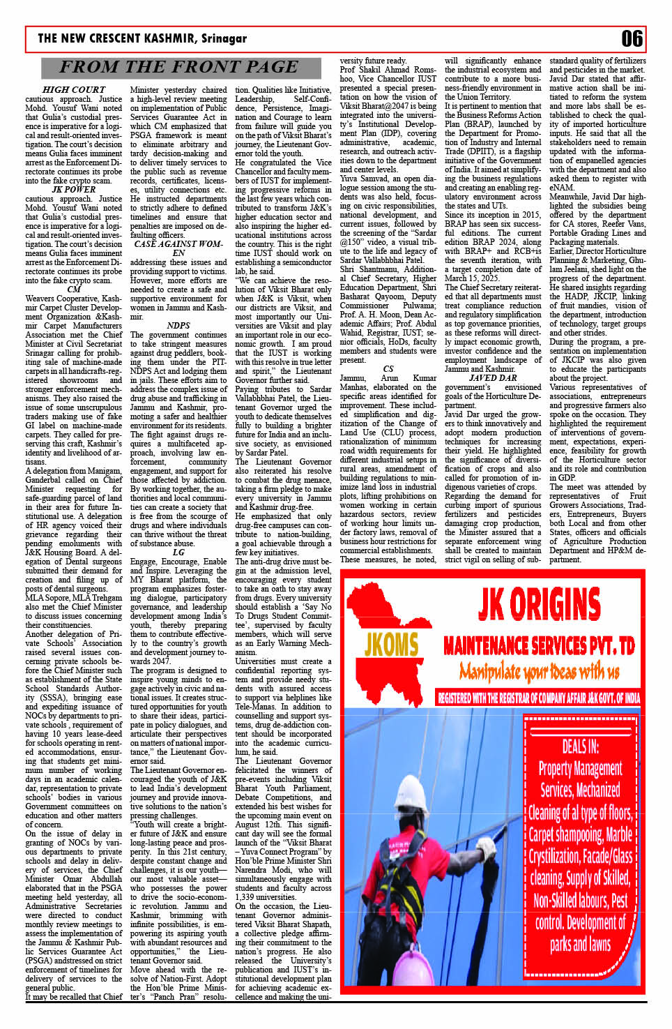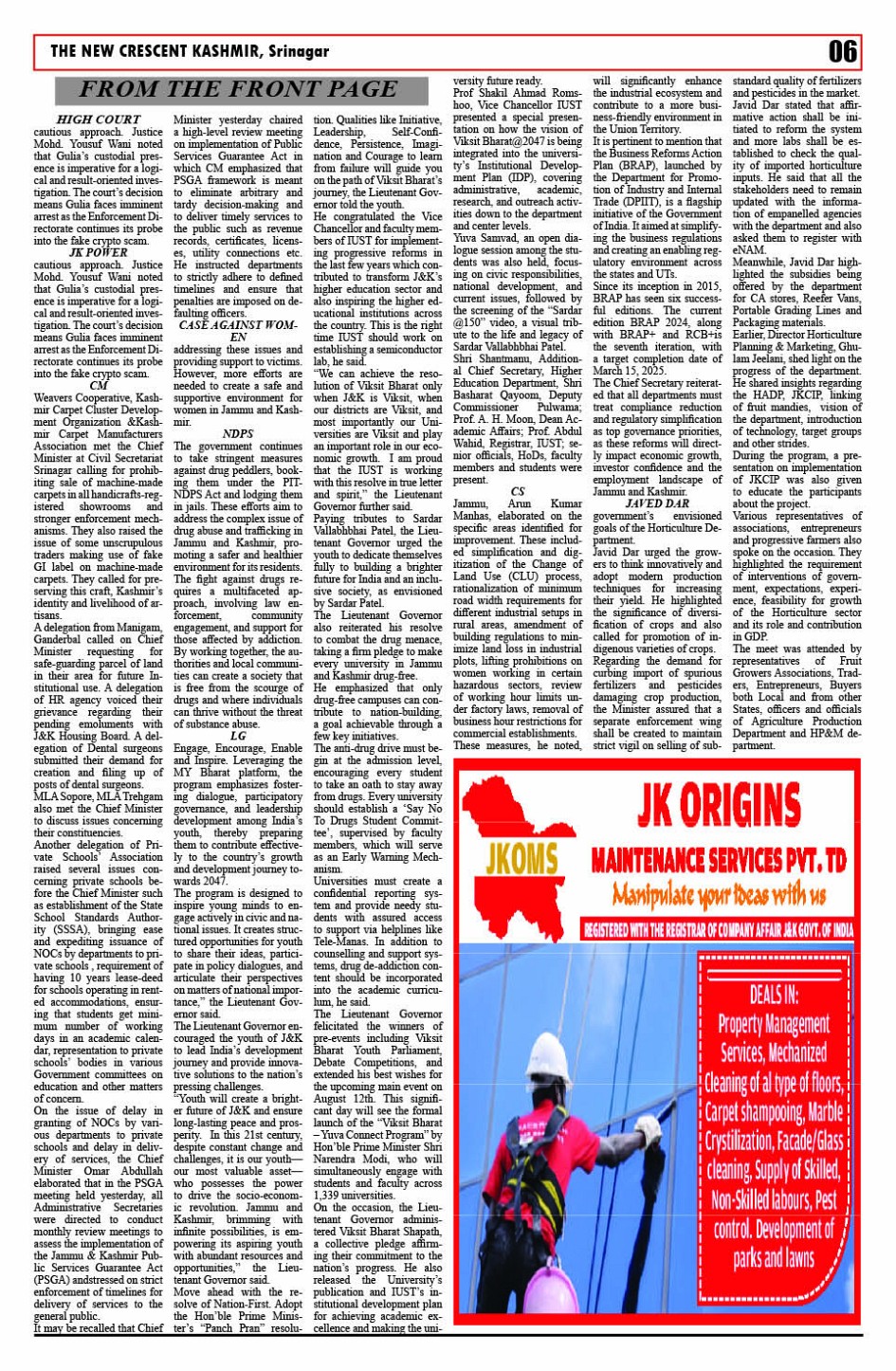 Crescent Kashmir 25-07-2025 Page: 6 July 25, 2025 << First << 6 >> Last >> Page 1Page 2Page 3Page 4Page 5Page 6Page 7Page 8 × Crescent Kashmir 25-07-2025 << First << 6 >> Last >> CK 1CK 2CK 3CK 4CK 5CK 6CK 7CK 8 CK 6