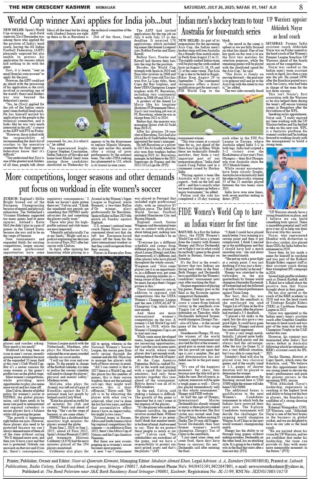 Crescent Kashmir 26-07-2025 Page: 8 July 26, 2025 << First << 8 >> Last >> Page 1Page 2Page 3Page 4Page 5Page 6Page 7Page 8 × Crescent Kashmir 26-07-2025 << First << 8 >> Last >> CK 1CK 2CK 3CK 4CK 5CK 6CK 7CK 8 CK 8