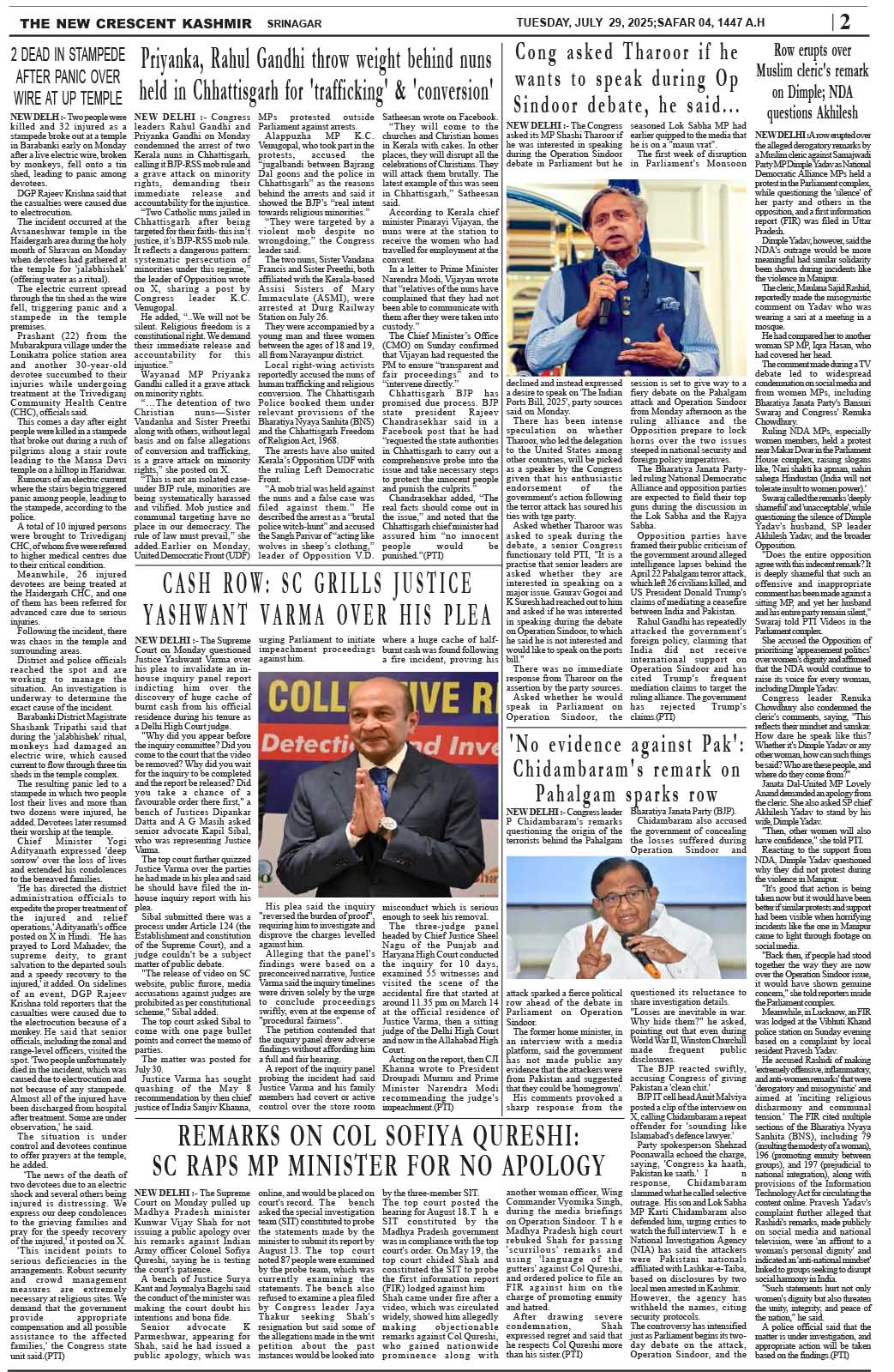 Crescent Kashmir 29-07-2025 Page: 2 July 29, 2025 << First << 2 >> Last >> Page 1Page 2Page 3Page 4Page 5Page 6Page 7Page 8 × Crescent Kashmir 29-07-2025 << First << 2 >> Last >> CK 1CK 2CK 3CK 4CK 5CK 6CK 7CK 8 CK 2