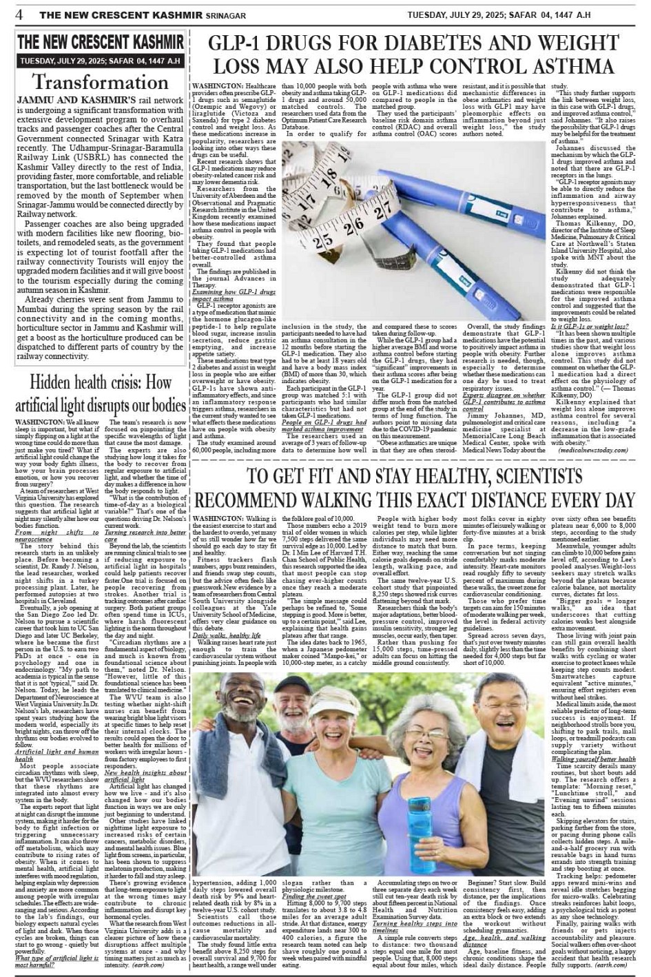 Crescent Kashmir 29-07-2025 Page: 4 July 29, 2025 << First << 4 >> Last >> Page 1Page 2Page 3Page 4Page 5Page 6Page 7Page 8 × Crescent Kashmir 29-07-2025 << First << 4 >> Last >> CK 1CK 2CK 3CK 4CK 5CK 6CK 7CK 8 CK 4