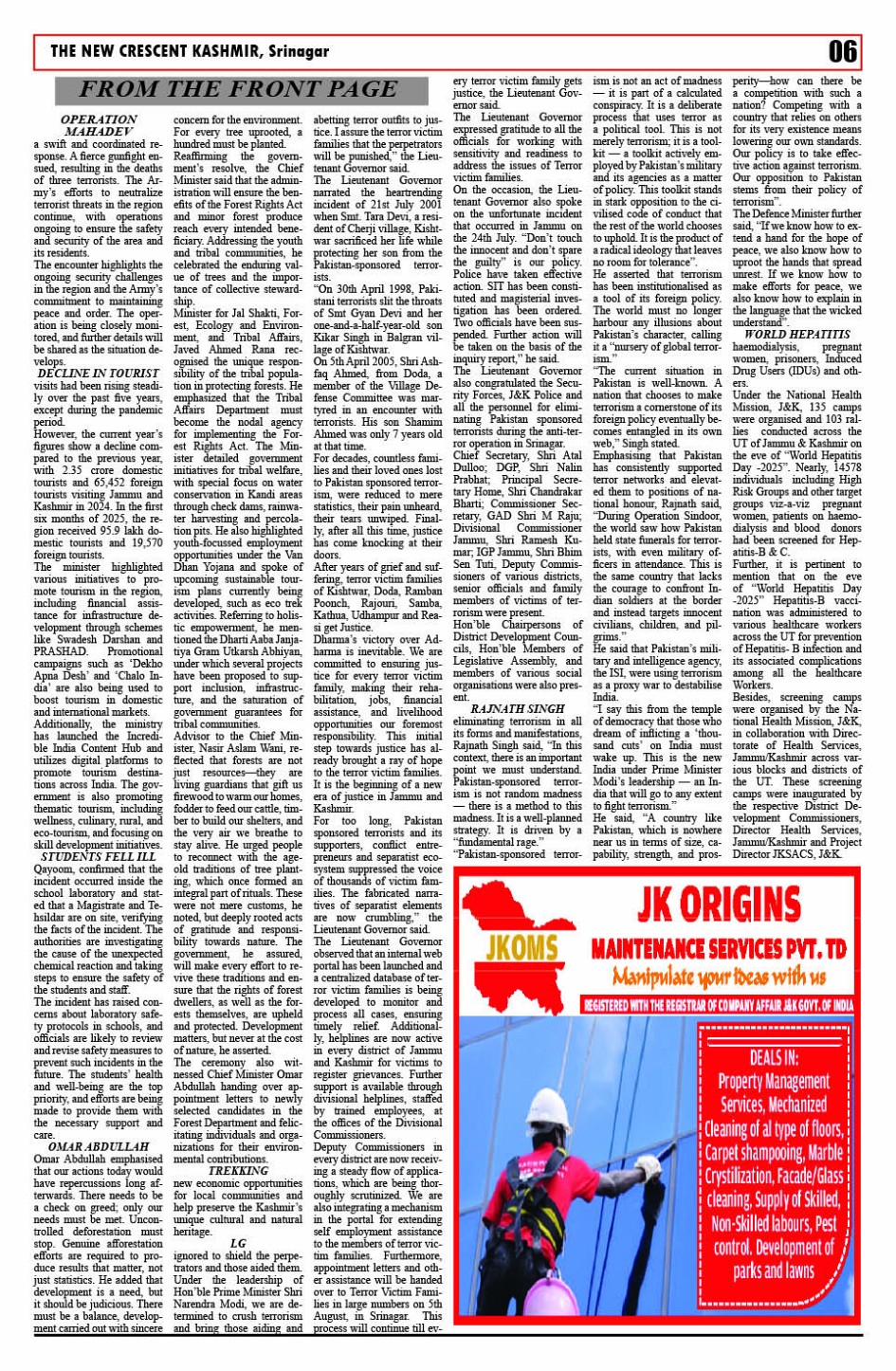 Crescent Kashmir 29-07-2025 Page: 6 July 29, 2025 << First << 6 >> Last >> Page 1Page 2Page 3Page 4Page 5Page 6Page 7Page 8 × Crescent Kashmir 29-07-2025 << First << 6 >> Last >> CK 1CK 2CK 3CK 4CK 5CK 6CK 7CK 8 CK 6