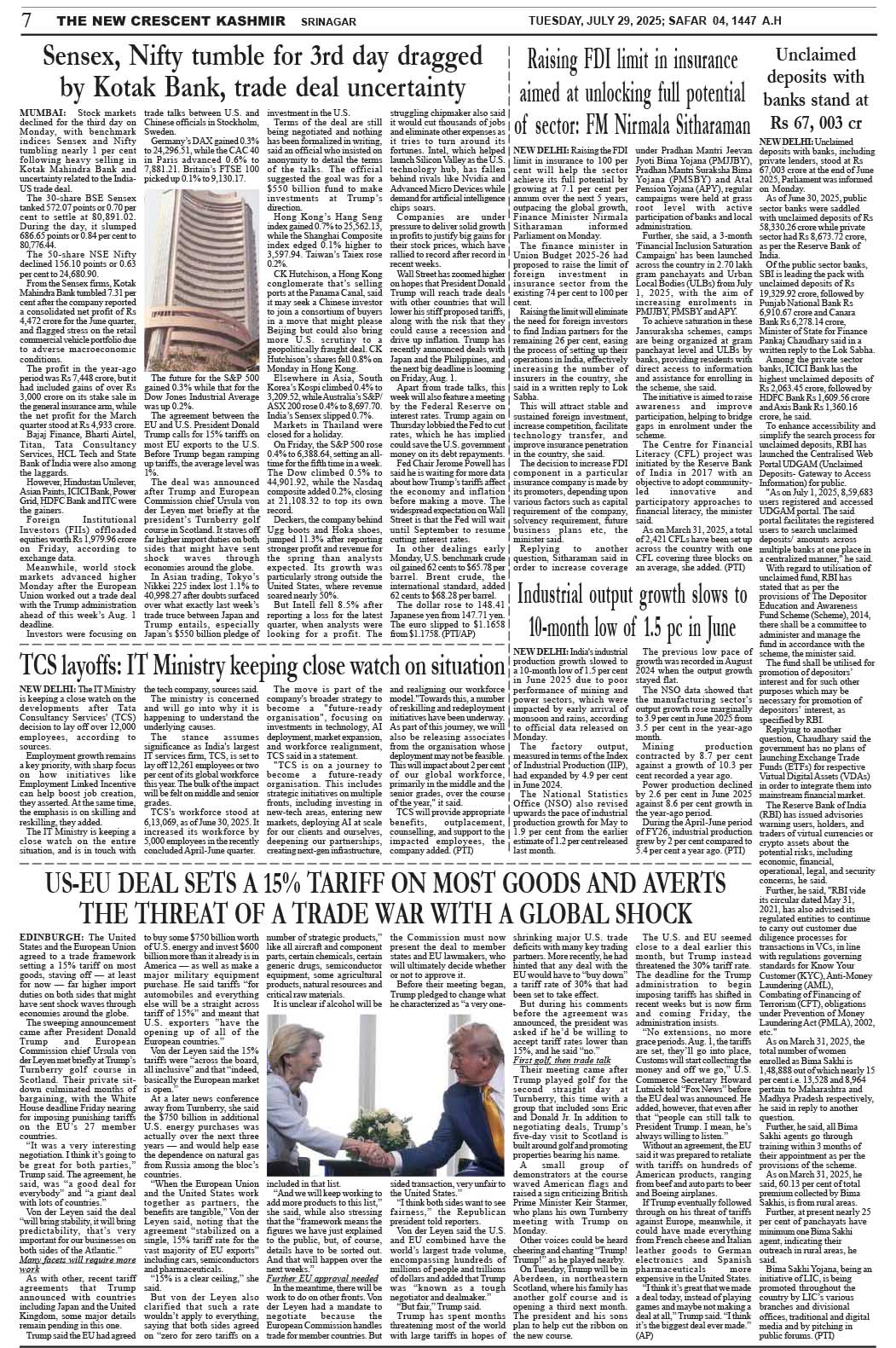 Crescent Kashmir 29-07-2025 Page: 7 July 29, 2025 << First << 7 >> Last >> Page 1Page 2Page 3Page 4Page 5Page 6Page 7Page 8 × Crescent Kashmir 29-07-2025 << First << 7 >> Last >> CK 1CK 2CK 3CK 4CK 5CK 6CK 7CK 8 CK 7