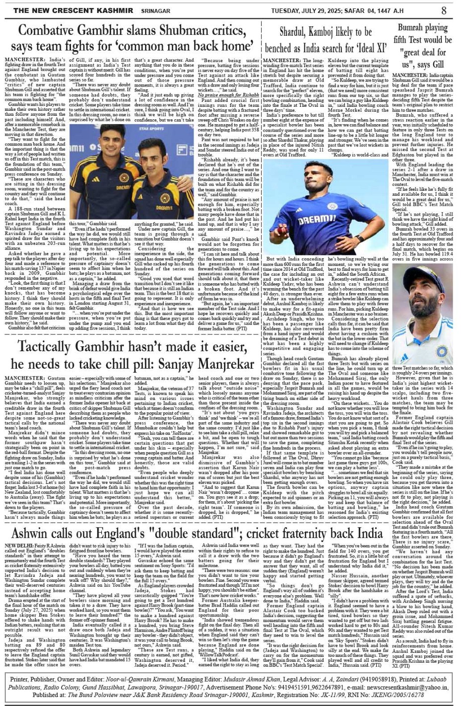 Crescent Kashmir 29-07-2025 Page: 8 July 29, 2025 << First << 8 >> Last >> Page 1Page 2Page 3Page 4Page 5Page 6Page 7Page 8 × Crescent Kashmir 29-07-2025 << First << 8 >> Last >> CK 1CK 2CK 3CK 4CK 5CK 6CK 7CK 8 CK 8