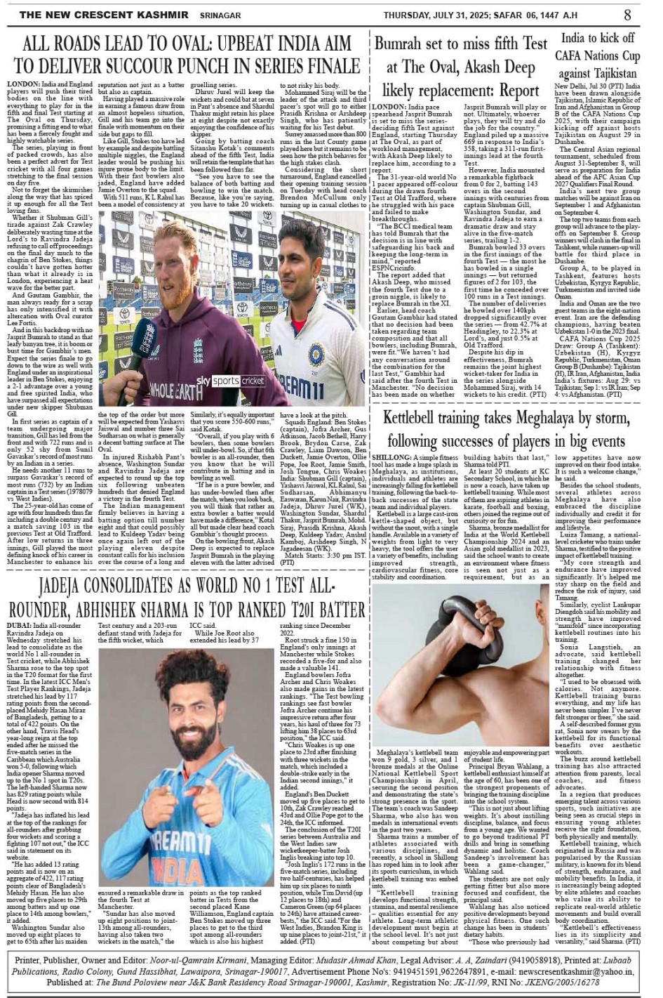 Crescent Kashmir 31-07-2025 Page: 8 July 31, 2025 << First << 8 >> Last >> Page 1Page 2Page 3Page 4Page 5Page 6Page 7Page 8 × Crescent Kashmir 31-07-2025 << First << 8 >> Last >> CK 1CK 2CK 3CK 4CK 5CK 6CK 7CK 8 CK 8