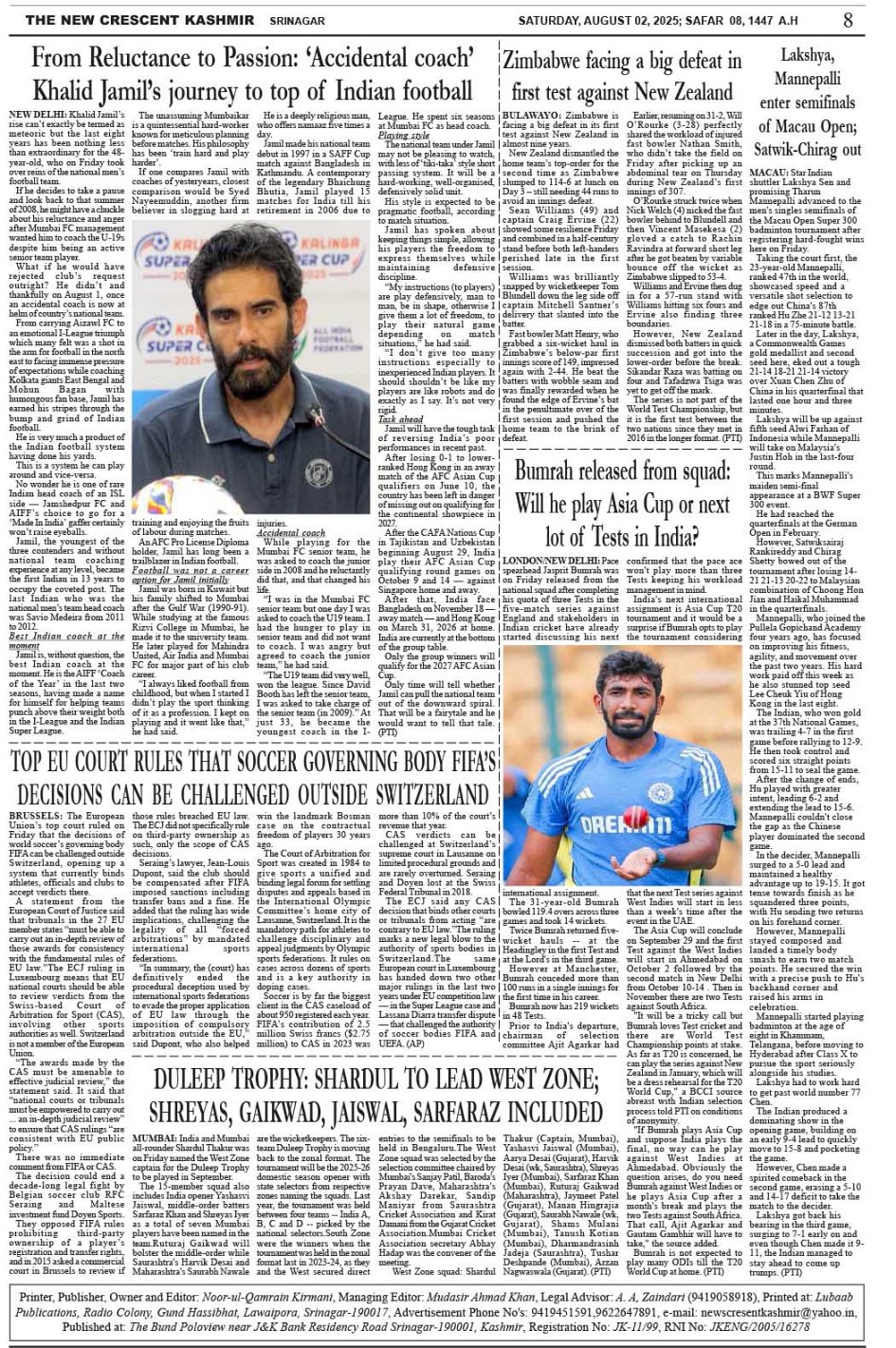 Crescent Kashmir 02-08-2025 Page: 8 August 02, 2025 << First << 8 >> Last >> Page 1Page 2Page 3Page 4Page 5Page 6Page 7Page 8 × Crescent Kashmir 02-08-2025 << First << 8 >> Last >> CK 1CK 2CK 3CK 4CK 5CK 6CK 7CK 8 CK 8