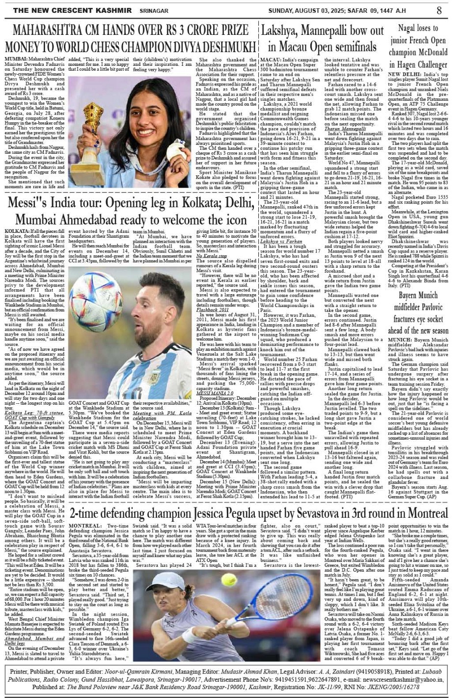 Crescent Kashmir 03-08-2025 Page: 8 August 03, 2025 << First << 8 >> Last >> Page 1Page 2Page 3Page 4Page 5Page 6Page 7Page 8 × Crescent Kashmir 03-08-2025 << First << 8 >> Last >> CK 1CK 2CK 3CK 4CK 5CK 6CK 7CK 8 CK 8