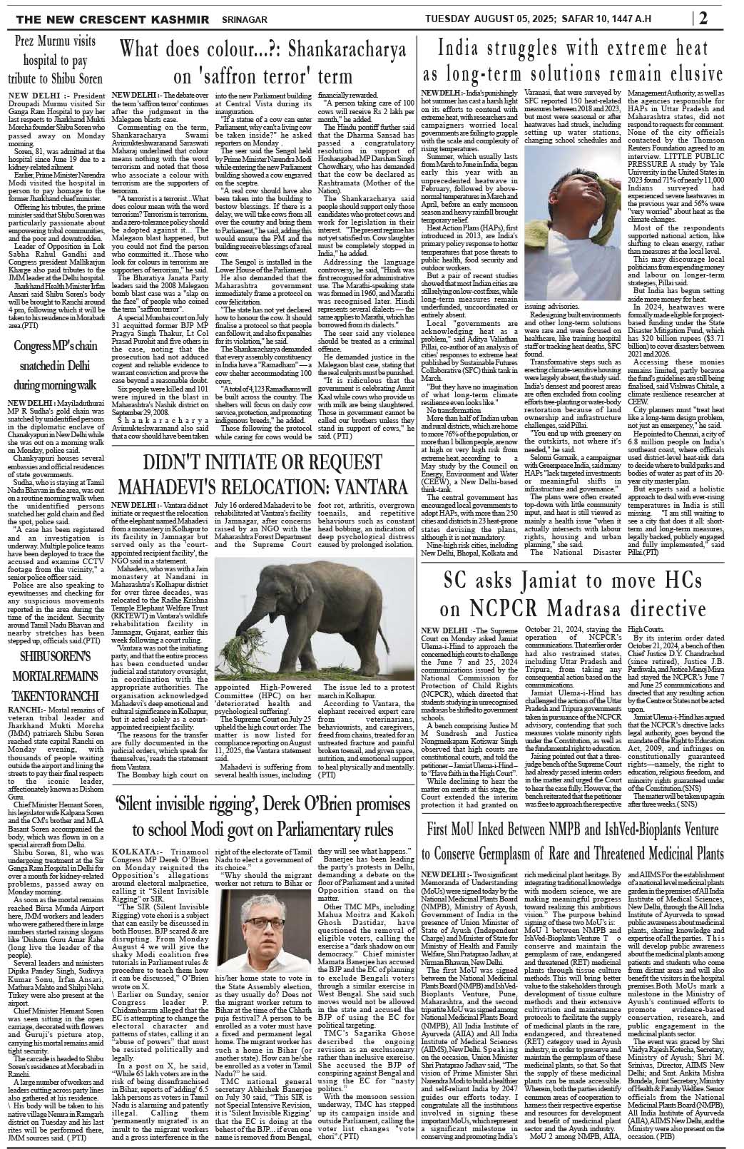 Crescent Kashmir 05-08-2025 Page: 2 August 05, 2025 << First << 2 >> Last >> Page 1Page 2Page 3Page 4Page 5Page 6Page 7Page 8 × Crescent Kashmir 05-08-2025 << First << 2 >> Last >> CK 1CK 2CK 3CK 4CK 5CK 6CK 7CK 8 CK 2