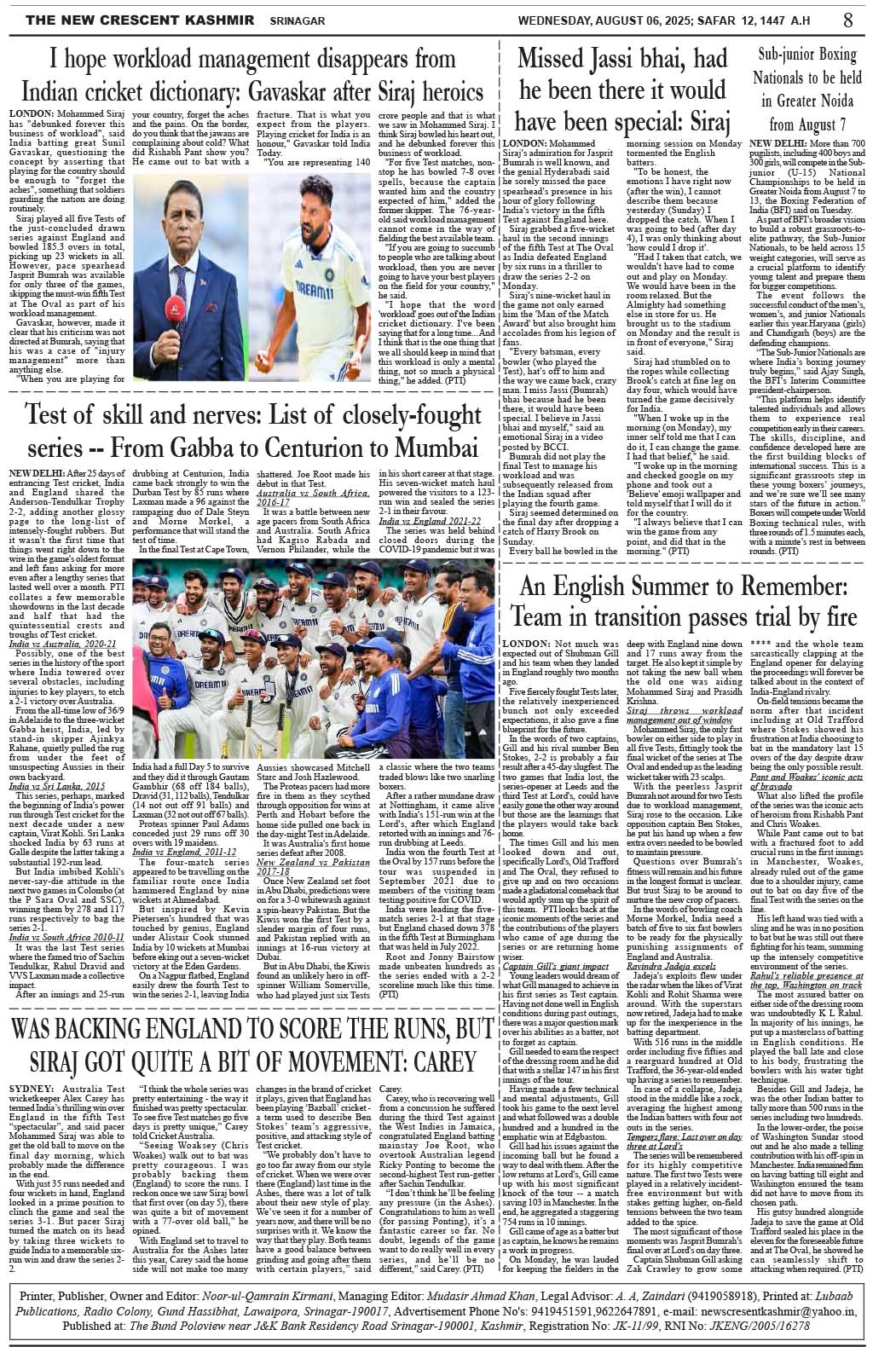 Crescent Kashmir 06-08-2025 Page: 8 August 06, 2025 << First << 8 >> Last >> Page 1Page 2Page 3Page 4Page 5Page 6Page 7Page 8 × Crescent Kashmir 06-08-2025 << First << 8 >> Last >> CK 1CK 2CK 3CK 4CK 5CK 6CK 7CK 8 CK 8